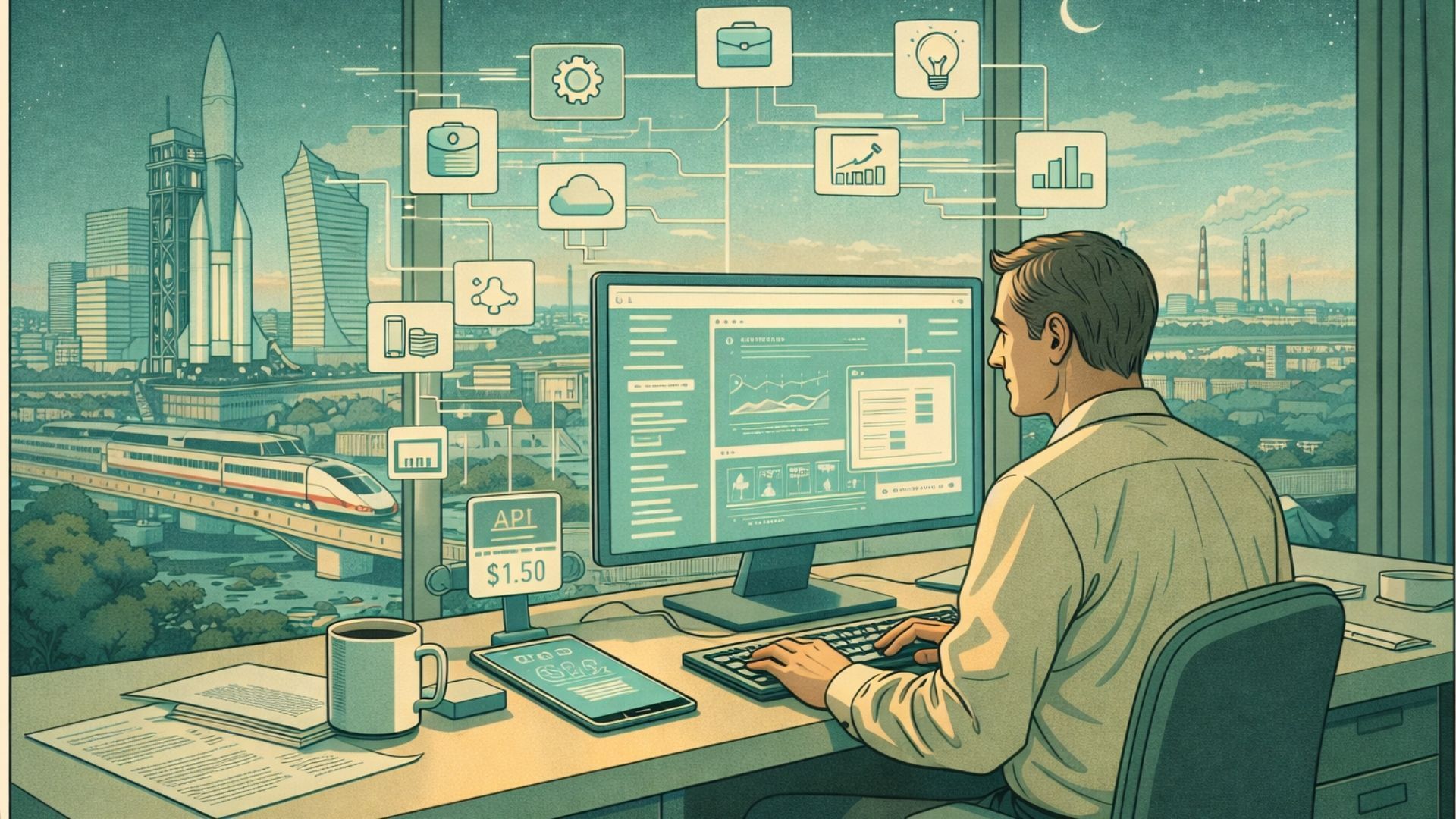 1) Azeem Azhar: āVorige maand had ik een stuk software nodig. Tien jaar geleden zou dat betekend hebben dat ik een ontwikkelaar moest inhuren, de scope moest onderhandelen en een project moest managen. De kostprijs zou ergens boven de 10.000 dollar hebben gelegen en de doorlooptijd weken hebben geduurd. Nu deed ik het in ƩƩn avond. De kost, in API-calls, bedroeg 1,50 dollar.